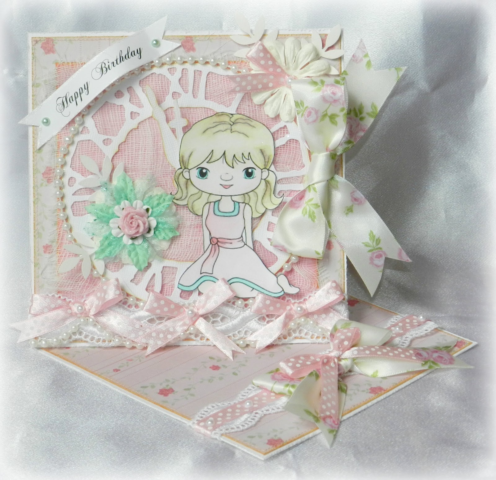 A stunning twisted easel card Valou - the soft colours are gorgeous. Wonderful embellishments - love the ribbons!